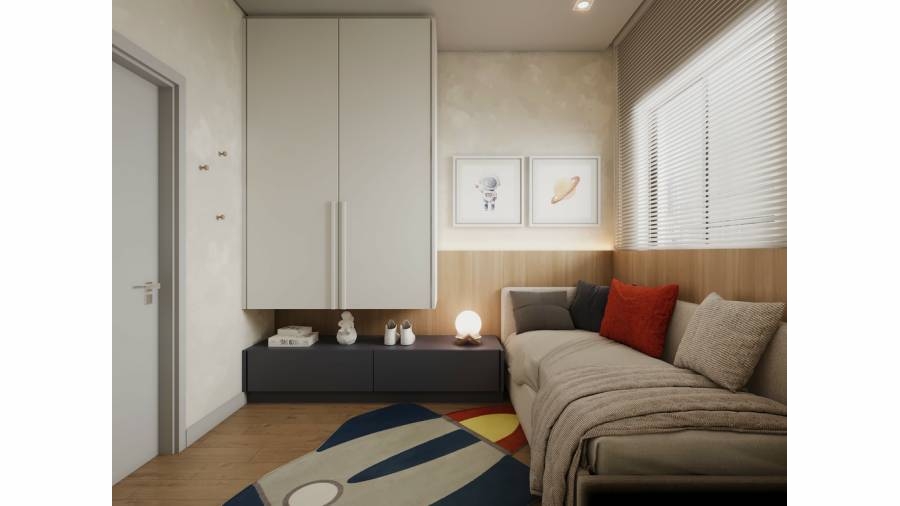 As unidades oferecem diferenciais como churrasqueira, varanda gourmet, espera para ar-condicionado, forro em gesso, closet, porta codificada e home office, garantindo conforto e praticidade.