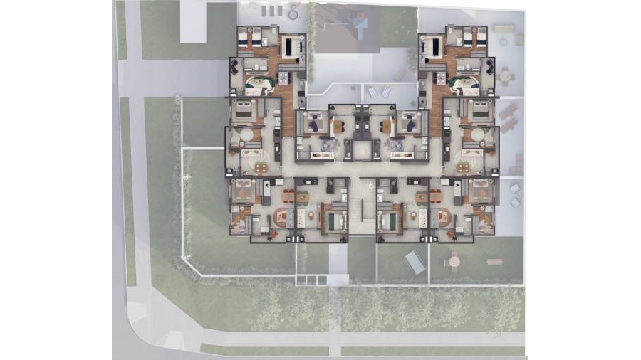 As unidades oferecem diferenciais como churrasqueira, varanda gourmet, espera para ar-condicionado, forro em gesso, closet, porta codificada e home office, garantindo conforto e praticidade.