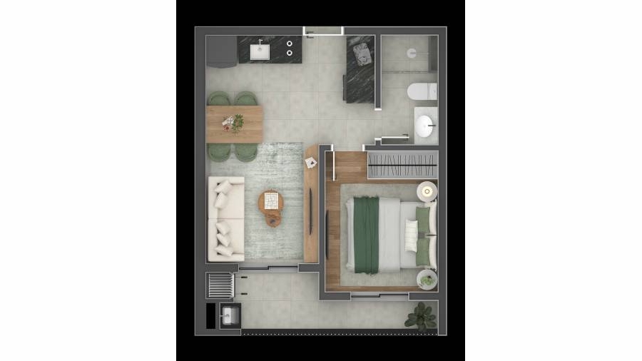 PORTÃO - 34,52M2 - APARTAMENTO 01 QUARTO, SALA CONJUGADA, TERCEIRO ANDAR, FACE NORTE, VALORES PODEM SER ALTERADOS A QQ MOMENTO A CRITERIO DA CONSTRUTORA